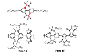图1. 缺电子单元BNBP双锡盐单体以及用其构筑的A-A型有机硼共轭高分子
