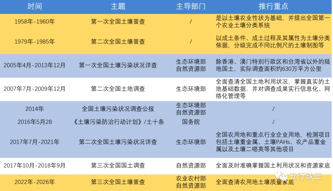 注:根据《中华人民共和国土壤污染防治法》规定,全国土壤污染状况详查每十年一次。