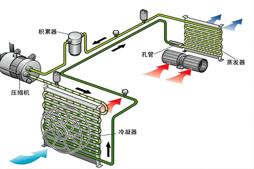 室内的温度通常比室外低,空调中的制冷机通过消耗电功使低温的室内源源不断地向高温室外的释放热量,从而降低室内的温度,让人感到凉爽。空调具体是如何实现制冷的呢?它大致由四个部件构成,分别为压缩机,冷凝器,蒸发器和节流装置。其中,压缩机是空调的核心部件,也是整个空调制冷系统的动力来源。