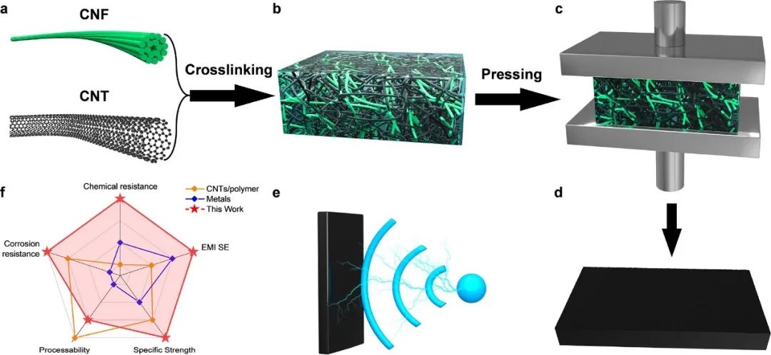 不幸的是,由于 CPC 的导电性较低,CPC 的 EMI 屏蔽效率 (SE) 通常低于金属材料。为了实现 CPC 的高性能 EMI 屏蔽,需要大量的导电填料来形成足够的屏蔽网络。高含量的导电填料通常会导致机械劣化、成本增加和加工困难。况且导电聚合物复合材料的机械性能和热稳定性差等缺点限制了它们的进一步应用。
