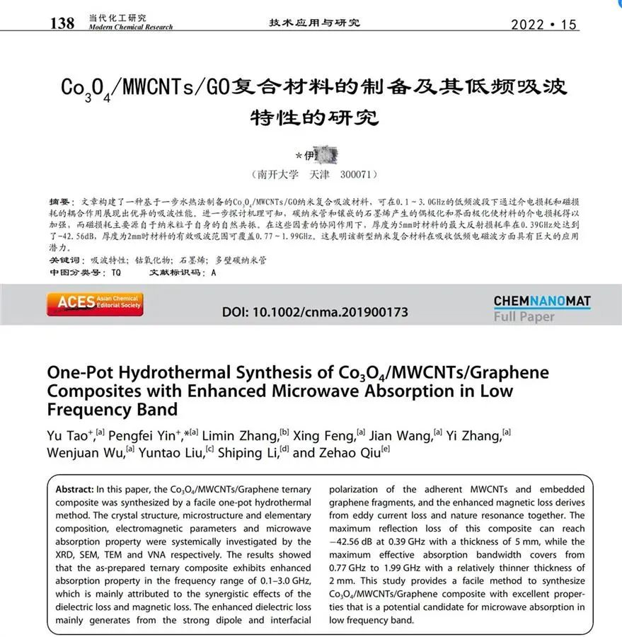 小李发表的论文为《三元纳米复合材料的一步水热法制备及低频吸波特性研究)》,该文于2019年4月23日发表在《ChemNanoMat(纳米材料化学)》期刊上。公开资料显示,《ChemNanoMat》由亚洲化学编辑学会(Asian Chemical Editorial Society, ACES)于2014年出版发行,涵盖纳米材料化学领域及其他相关跨学科领域,是SCI期刊。 而被指抄袭的《复合材料的制备及其低频吸波特性的研究》一文作者为南开大学物理学院的小伊(化名),该文于2022年8月8日发表在普通期刊《当代化工研究》上。 经过对比发现,两篇论文从摘要、实验方法、实验材料来源、实验数据到结论均高度相似。其中2019年发表的论文中,实验材料分别来自于苏州碳丰石墨烯科技有限公司、成都科隆化学有限公司和天津市恒兴化学试剂制造有限公司,然而,2022年发表论文中的实验材料同样来自这三家公司。2019年的论文参考文献共53篇,2022年发表论文参考文献共10篇,均与前者重合。 而且,据查询,南开大学小伊在《北京大学物理学院2023年拟录取推荐免试研究生名单公示》中,被拟录取为北京大学2023届物理学院凝聚态物理专业推荐免试博士研究生,其复试成绩为91.5分,在拟录取的69名学生中排第31位。