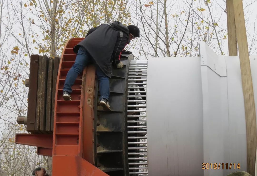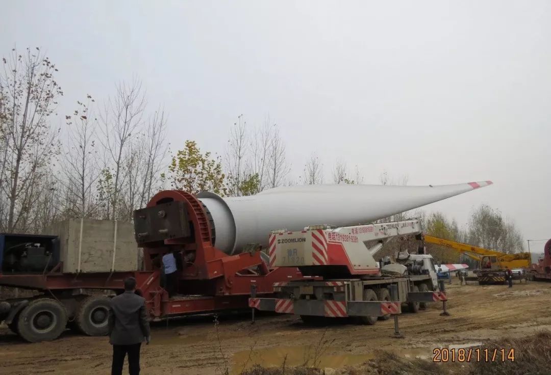一个扇叶有59米长,所以起吊的时候需要两台吊车同时起吊。