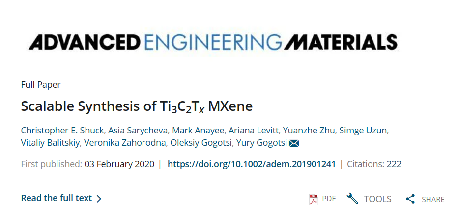 MXene是一种新型二维片层的纳米材料,它是通过使用氟化氢刻蚀其前驱体MAX相获得。其中Ti3C2Tx是MXenes系列材料的一种,也是目前 MXenes材料研究比较多的一种,其剥离制备技术最为成熟。本文对 “MXene 之父”Yury Gogotsi课题组关于MXene相关的工作进行了汇总。