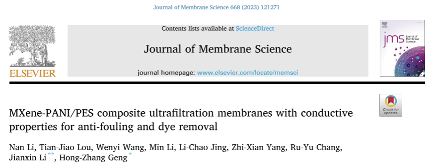 2、天津工业大学李建新&耿宏章教授团队: 具有导电性能的 MXene-PANI/PES 复合超滤膜用于防污和染料去除