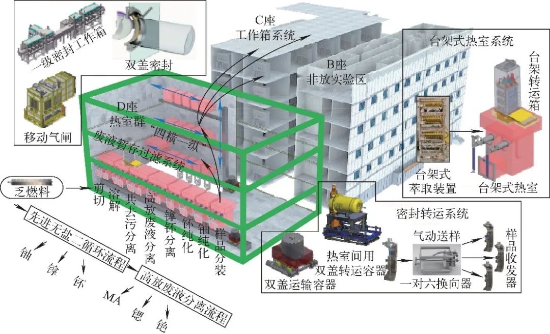 与此同时,在科学研究方面,我国已经形成了以中国科学院上海应用物理研究所、清华大学、中国科学技术大学、北京大学、上海交通大学为首的科研攻坚团队,取得了一系列自主创新性的乏燃料后处理成果,如,清华大学核研院开发的TRPO高放废液分离流程,中国科学院上海应用物理研究所提出钍基熔盐堆(TMSR)燃料处理流程,四川大学、中科院原子能院荚醚分离高放废液流程,中国科学院高能物理研究所和原子能院的氯化铝熔解-Al合金化和氟化物熔解-电解分离流程。我们中国的核能科研人员在这一领域继续发挥创新精神和探索精神,为实现乏燃料后处理技术的更加高效、可靠和可持续发展做出了更大的中国方案,贡献了中国智慧。